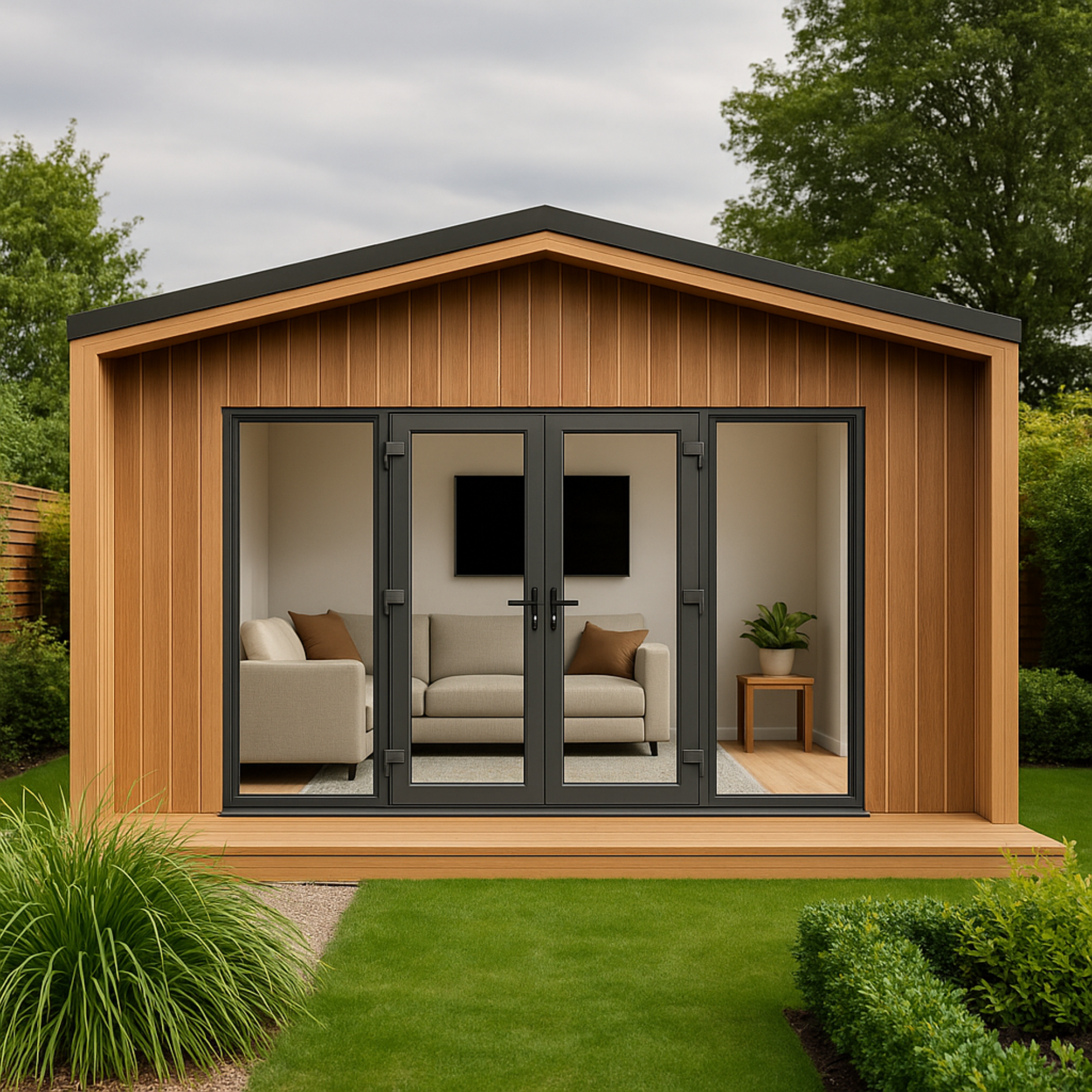 - Cladding: Thermowood, British Cedar, or Western Red Cedar. All four walls can be clad in your preferred timber, or mix-and-match for a unique finish (custom quotes on request).